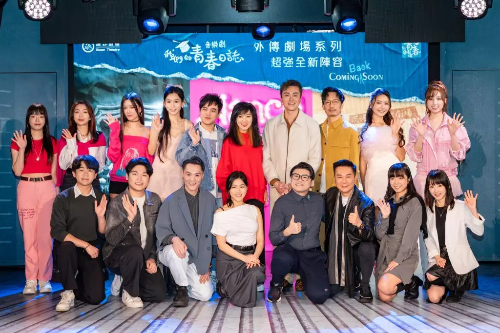 香港長壽音樂劇傳奇《我們的青春日誌》演出至今已經跨越700場,除了引發觀眾共鳴的劇情、悠揚悅耳的歌曲,以及連場精采歌舞之外,性格鮮明、有血有肉的劇中人物亦深受觀眾喜愛。有見及此,身兼主創、導演及監製的爆炸戲棚藝術總監陳恩碩(Tom)將原裝音樂劇延伸創作「青春外傳劇場」系列,包括沉浸式餐飲劇場《Ko’s Coffee的最後一小時》、經典K歌獨唱戲《Nancy戀噏Show》,以及教員室宮鬥式喜鬧劇《仁德風暴》,去年推出後大受歡迎,叫好叫座,其中兩個外傳現正舉行巡迴演出。三齣外傳劇場今年載譽歸來,除了爆炸戲棚的駐團演員之外,更邀請到多位歌影視紅星擔綱演出,包括米雪、黃浩然、強尼、沈震軒、戴祖儀、海兒、黃敏蕎(阿妹@Lolly Talk)及李晞彤(Carina@VIVA)。為隆重其事,大會於3月5日舉行媒體發佈會,由親自創作及執導三部外傳的陳恩碩率領一眾演員與媒體朋友見面,門票即將公開發售,勢必引起搶飛熱潮。