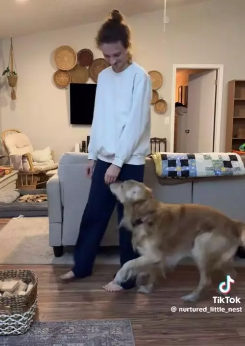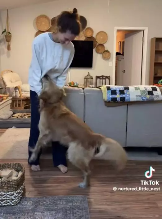 影片可見,艾蜜莉飼養的黃金獵犬整天緊隨在她身後,一臉擔心,始終不肯離開半步,之後甚至突然跳起輕輕碰了碰她的肚子,神情像是在刻意提醒甚麼。艾蜜莉表示,拍攝影片時她其實只懷孕約5周,而且這並非愛犬首次「搶先一步」察覺喜訊,過往也曾在她確認之前,提早出現異常黏人反應。