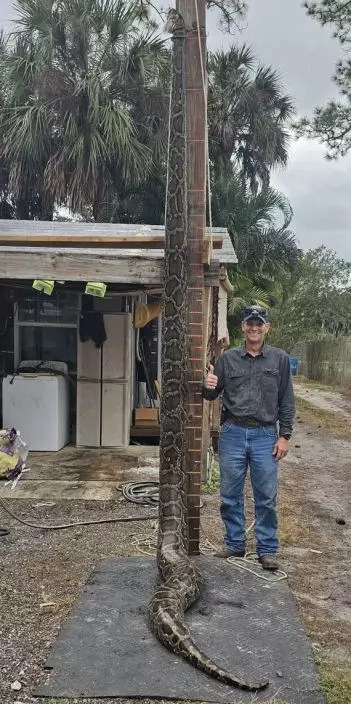 Carl Jackson, a contracted python hunter for the Florida Fish and Wildlife, caught the 2nd heaviest python in Florida weighing 202lbs