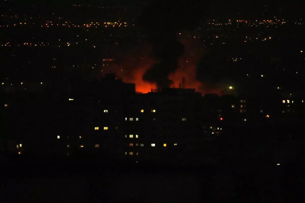 2026年3月7日周六,美國與以色列在伊朗發動軍事行動,德黑蘭遭襲擊,濃煙升起。(美聯社圖片/Vahid Salemi) AP圖片