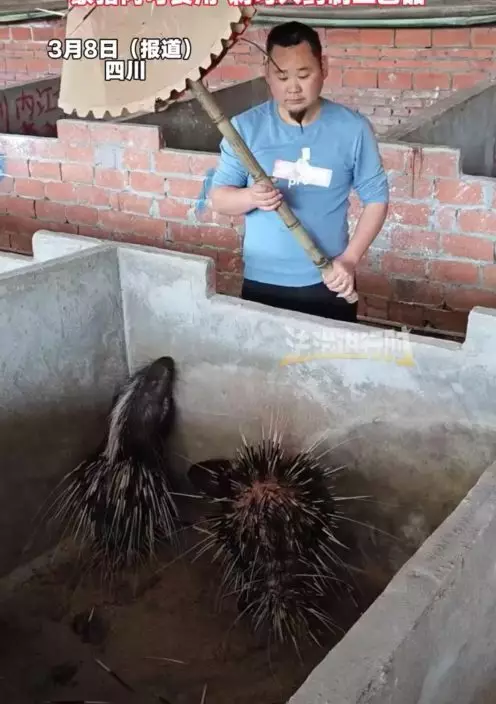 綜合內媒報導,四川內江一名余姓養殖戶專門飼養豪豬至今已17年,養殖規模最高峰時曾達7000多隻,引起不少網民關注。他介紹,豪豬除了可食用外,身上的刺也具有藥用價值,並可製作各類工藝品。