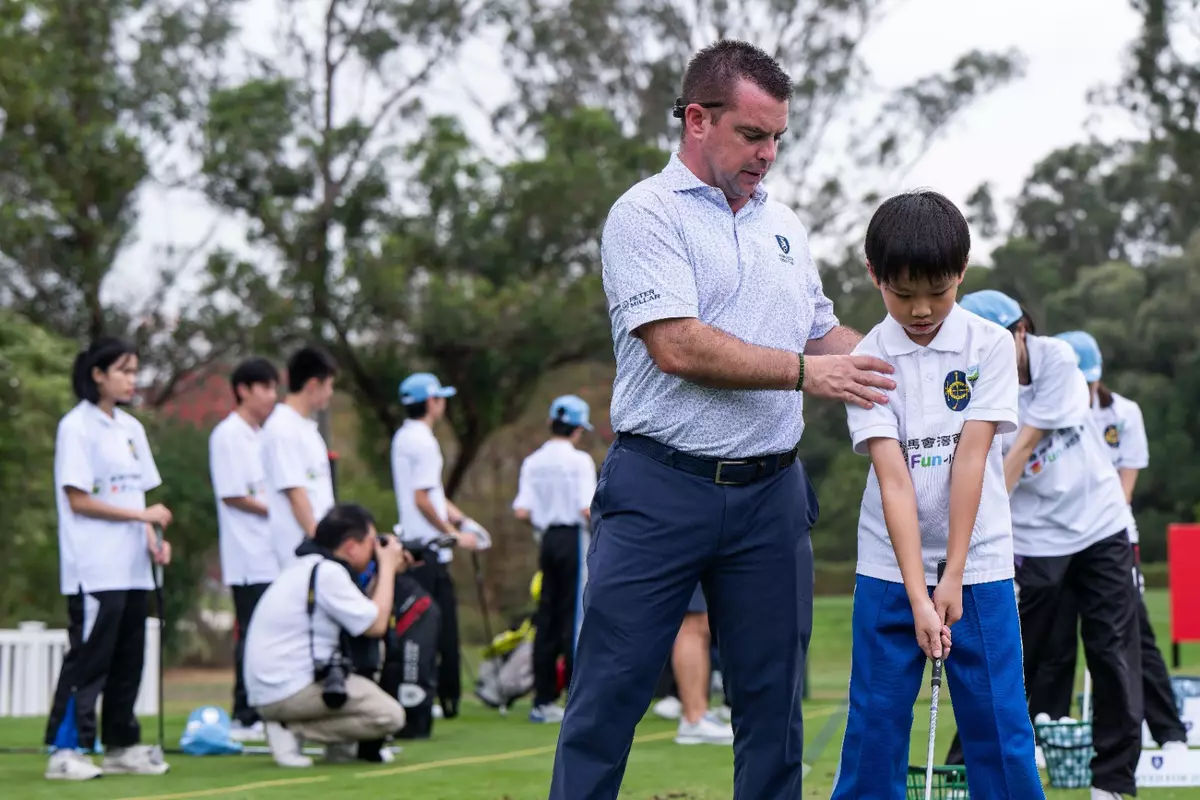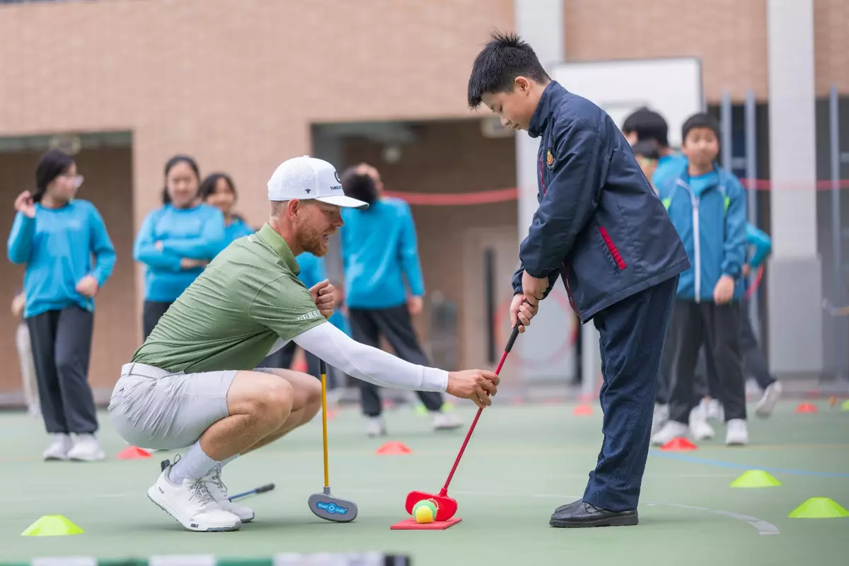 國際頂尖高球手到訪賽馬會樂動人生計劃的參與學校,並與學生交流。