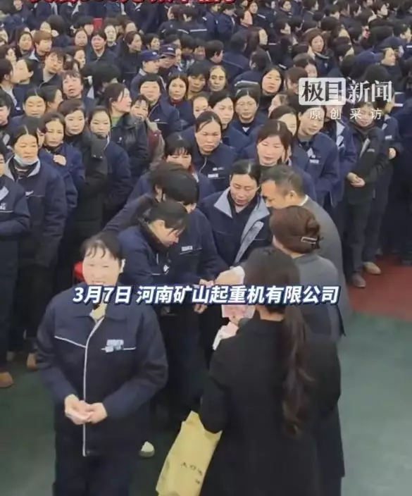 3月7日上午,河南礦山起重機有限公司管理層於三八婦女節慶祝大會上向近2000名女員工傳達董事長崔培軍的祝福與安排,派發800元(約910港元)現金利市作為節日福利,總金額約160萬元(約182萬港元),並叮囑她們將這筆錢當作「零用錢」,好好愛惜自己。此外,大會也表彰20名表現突出的「三八紅旗手」,每人額外獲得2000元(約2269港元)獎金。