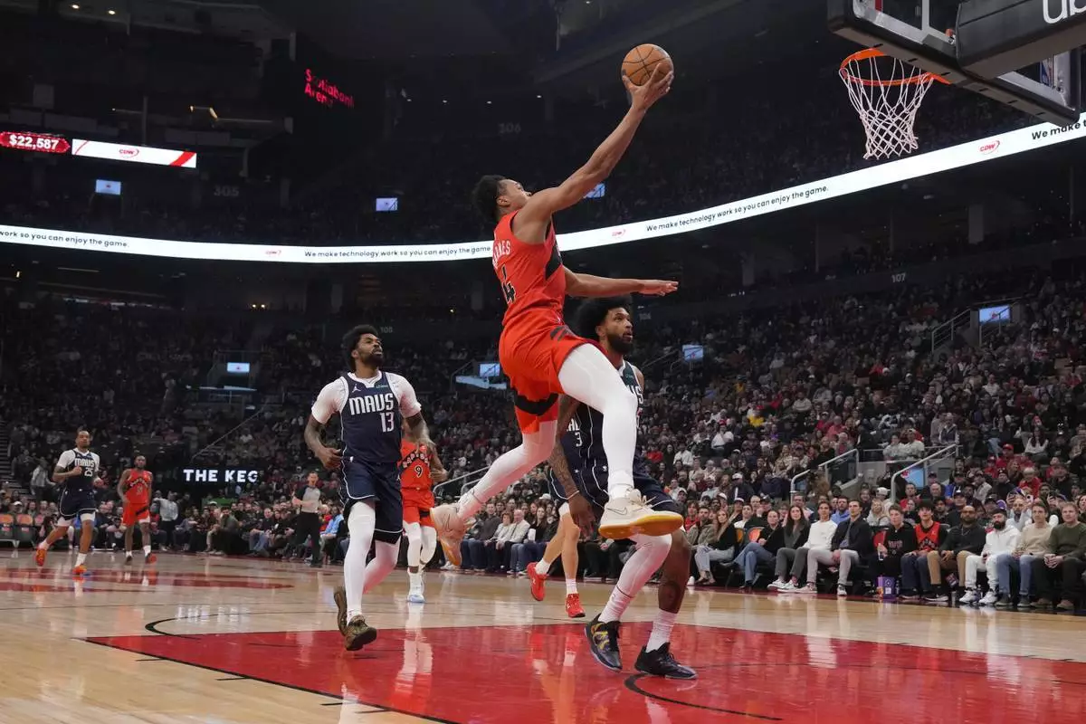 NBA常規賽,RJ巴域特(RJ Barrett)周日攻入今季個人新高31分,史葛巴恩斯(Scottie Barnes)亦貢獻17分,帶領多倫多速龍(Toronto Raptors)以122:92大勝近況低迷的達拉斯獨行俠(Dallas Mavericks)。