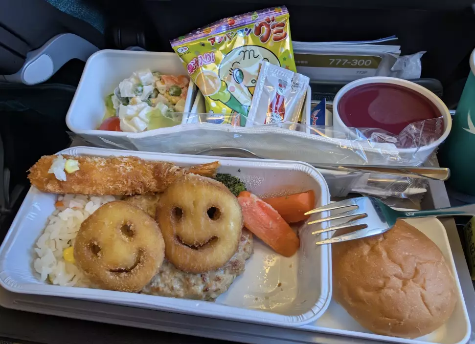 有女乘客搭機驚喜開箱所預訂的兒童餐,芝士肉醬麵配果汁賣相可愛,引來網民大讚菜色豐富份量剛剛好。原來不少成年乘客亦會搭機時選擇兒童餐,成為一個不錯的選擇。