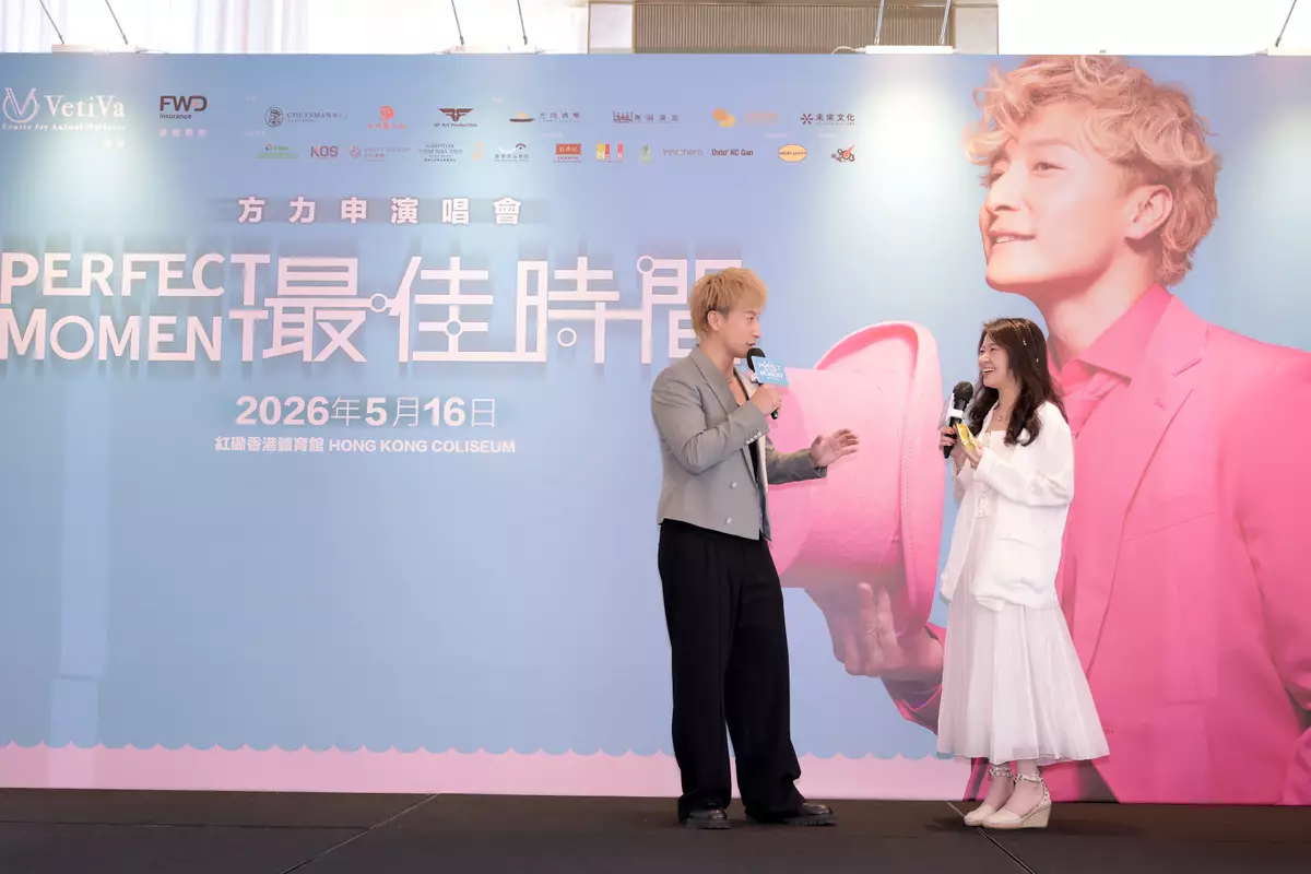 剛於2月26日度過46歲生日的方力申,昨日(3月9日)在尖沙咀出席記者會,正式宣布將於5月16日(星期六)首度踏上紅磡香港體育館,舉行入行超過25年以來首個紅館個人演唱會《方力申 Perfect Moment 最佳時間演唱會2026》!記者會由許紹雄女兒許惠菁擔任主持,席間更首播全新歌曲《万刀甲》,並邀請到「真·波友」尹光驚喜現身,二人即席切磋乒乓球技,貫切新歌主題,鼓勵大家要多運動,場面熱鬧有趣。