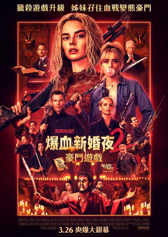 叫好叫座的驚慄爆笑電影續集《爆血新婚夜2:豪門遊戲》將展開更癲狂、更陰毒、更血腥的全新豪門獵殺遊戲,遊戲規則全面升級,各位玩家準備好未?Le Domas家族一鑊熟後,觸發最高議會啟動全新獵殺遊戲,僥倖逃離的「廝殺新娘」姬絲 (莎瑪拉韋榮 飾)隨即跌入血腥屠殺新階段!四大富豪家族誓要追殺姬絲,並綁架她的細妹(嘉芙蓮紐頓 飾) 作威脅,迫使姬絲入局,誰成最終贏家,就能統治世界!但打golf多過殺人嘅豪門一出手,即烏龍百出,埋身肉搏,子彈橫飛,唔係你死就係我亡,姬絲兩姊妹必須擸起武器大反擊,再次血洗豪門。