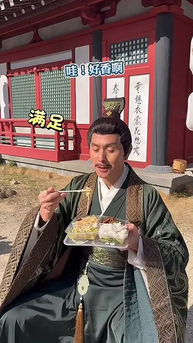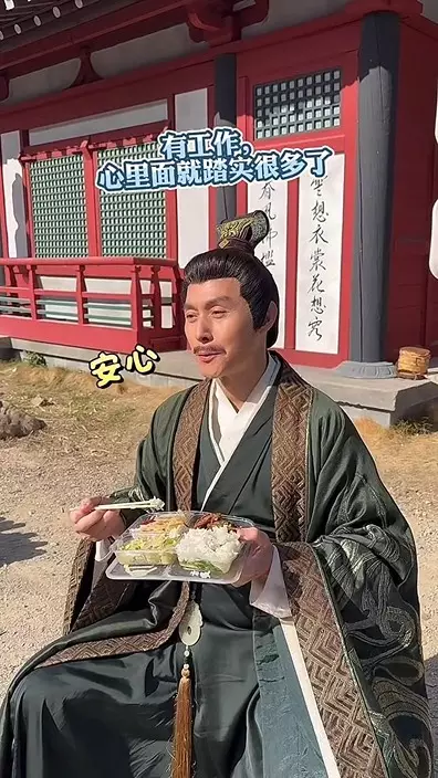 日前他在社交平台上載一段開工「放飯」的影片,只見他身穿古裝戲服,手拿飯盒坐在片場一角準備用餐。他一邊吃飯一邊笑言:「有葷有素確實不錯,在片場就有東西吃,也不用花心思去找東西。」又直言:「有工作心裏就踏實。」