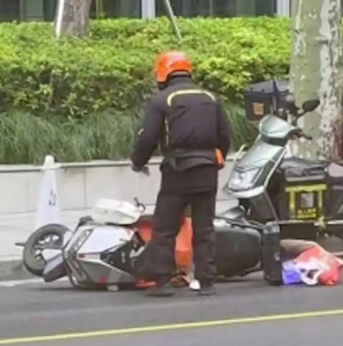 上海一名女店員意外拍到一名外賣員電單車遭強風吹倒,事後PO片幫發聲求平台免罰騎手,暖心後續曝光!