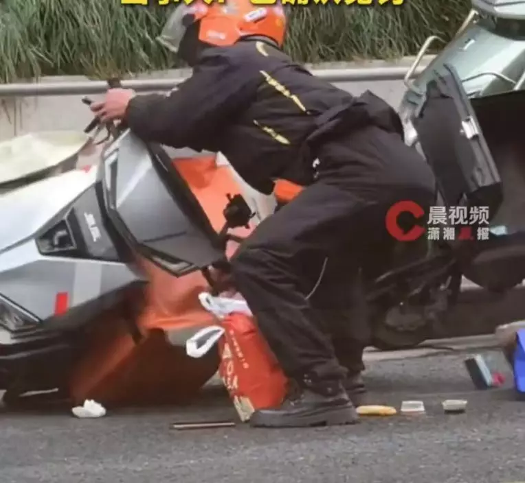 女子無意拍下外賣車被吹翻 籲平台網開一面