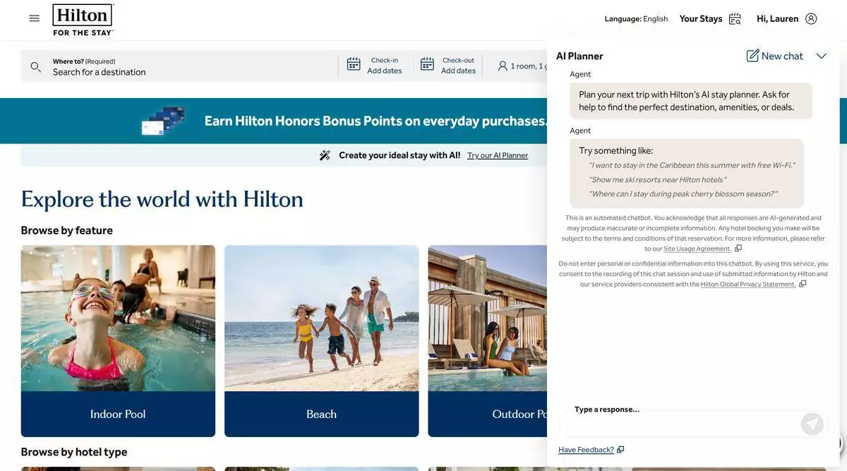 「希爾頓 AI 規劃師」利用對話式智能協助旅客處理預訂過程中的每個階段,無論是確定合適的目的地、比較物業還是探索設施。透過實時回應和精選建議,該工具提供超越傳統搜尋過濾器的流暢體驗。該工具最初將向 Hilton.com 的小部分網站流量開放,並隨著工具的演進,最終擴展至更多用戶。