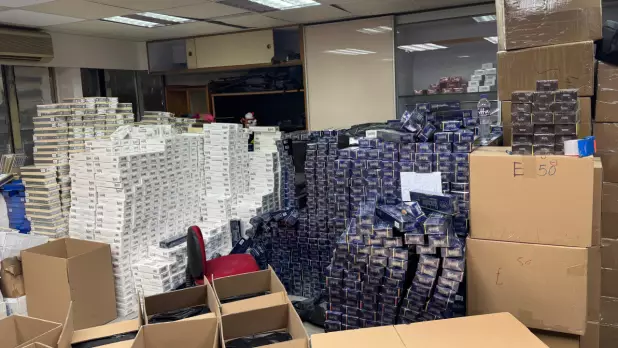 海關在葵涌一幢工業大廈的懷疑私煙貯存倉庫檢獲的部分懷疑私煙。(政府新聞處)