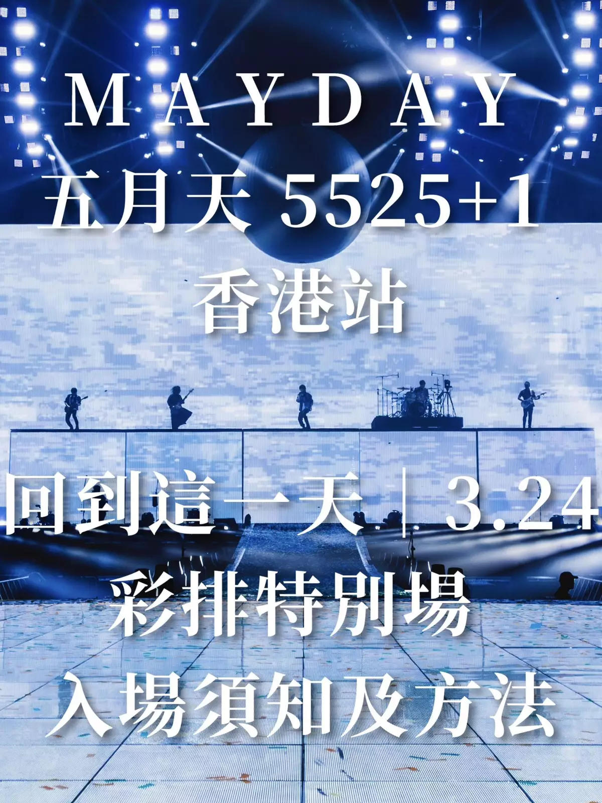 台灣天團五月天原定本月24日起在啟德體育園舉行演唱會,主辦單位日前宣布取消頭場,改於29日加開「成軍日特別場」。