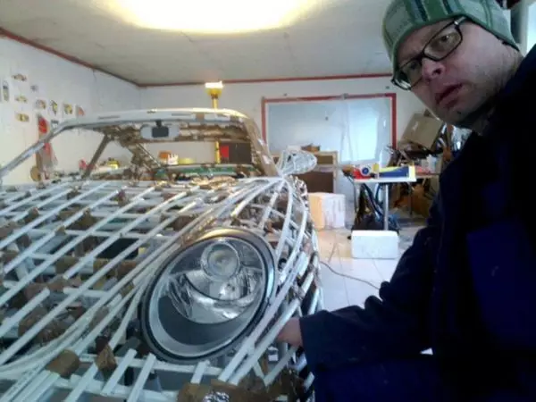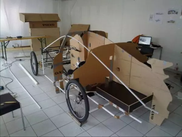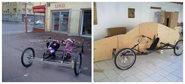 為了得到擁有名車的感覺,Johannes 突發奇想,用了半年時間將一部腳踏車與紙皮合二為一,外皮貼上金色鋁箔紙,看起來有板有眼,讓人誤以為是「土豪金限定版」。