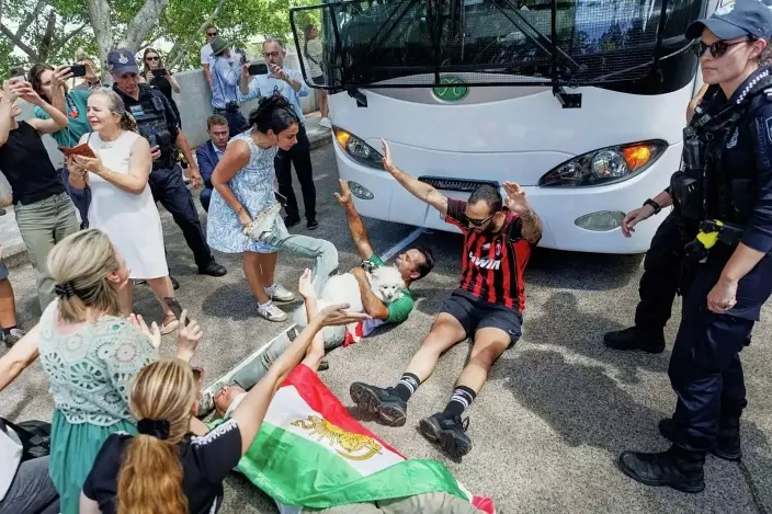 但同日下午,球隊下榻的酒店外發生騷動,有抗議者跪在或躺在球隊乘座的大巴前,試圖阻止大巴離開,其中有人高喊「救救我們的女孩」和「請立即採取行動」。示威者表示想為球員爭取更多時間與澳洲當局進行溝通,最終大巴被耽擱幾分鐘後離開酒店。