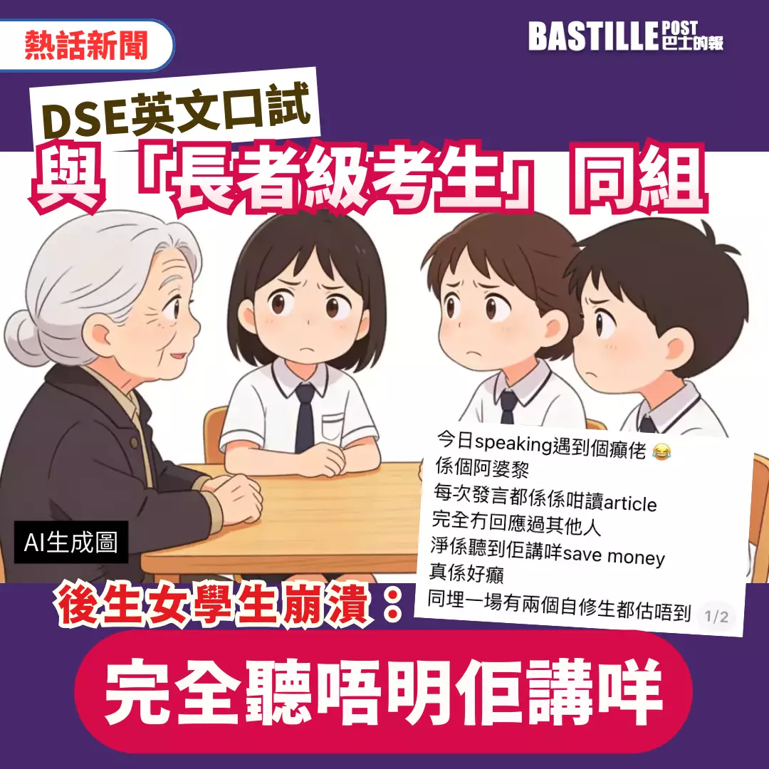中學文憑試(DSE)英文科口試近日開考,有女學生在社交平台發文,指在小組討論中與年長考生同組,因溝通困難而感到崩潰,擔心影響成績,事件引發網民熱議。