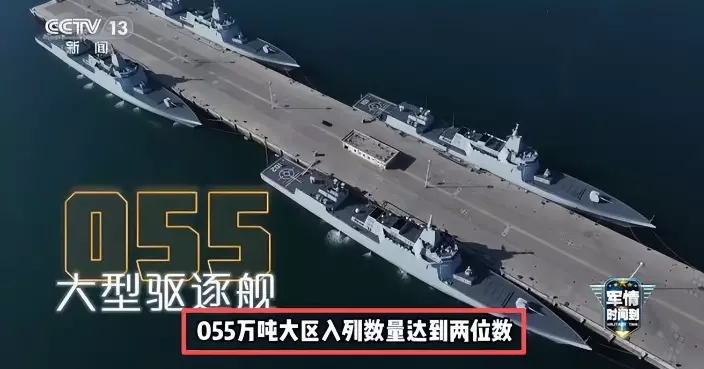 央視軍事新聞正式官宣,055型萬噸驅逐艦的正式服役數量已突破兩位數。