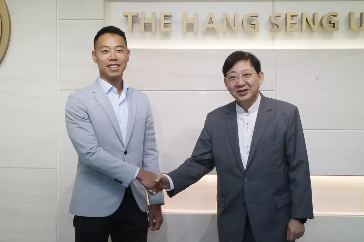 恒生大學校長何順文(右)與宏安地產行政總裁鄧灝康(左)表示「香港恒生大學博學堂」這創新校商合作模式將成為本港發展專上教育發展的模範。
