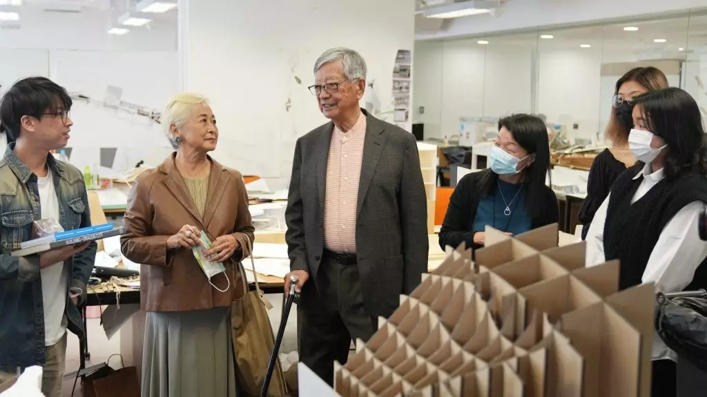 廖本懷與太太於2021年參觀港大建築學院工作室。港大建築學院圖片