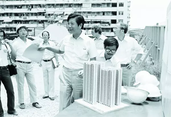 廖本懷在1960年代時介紹其華富邨設計。港大建築學院圖片