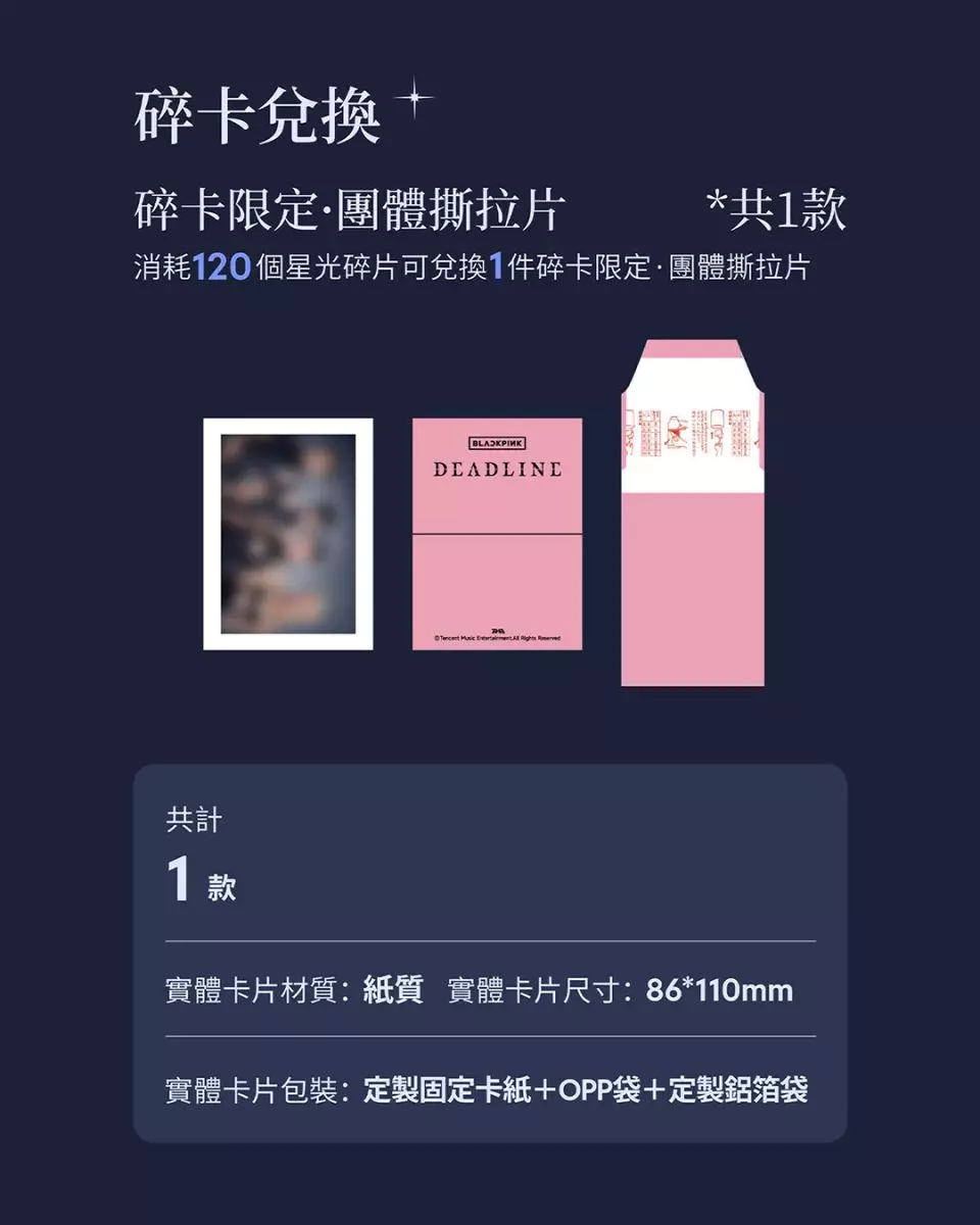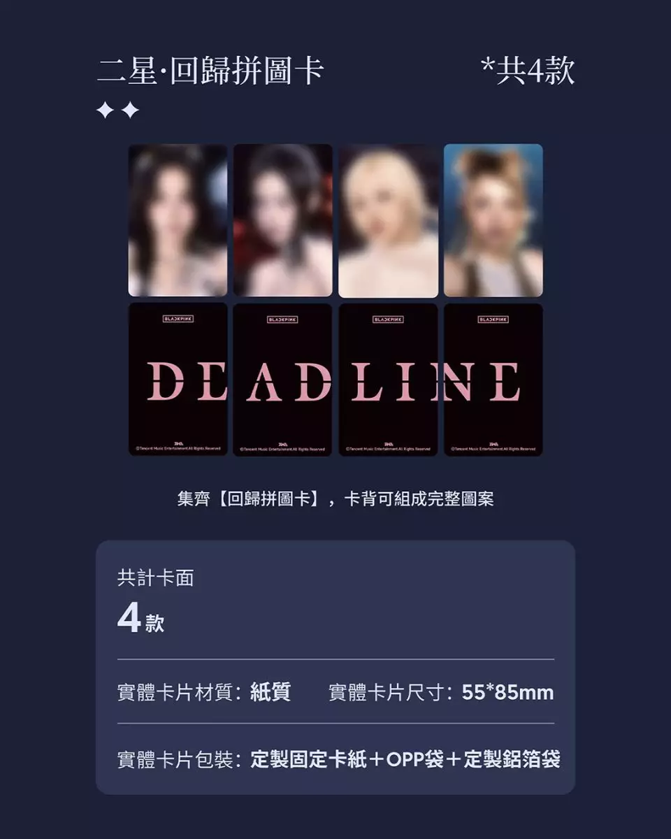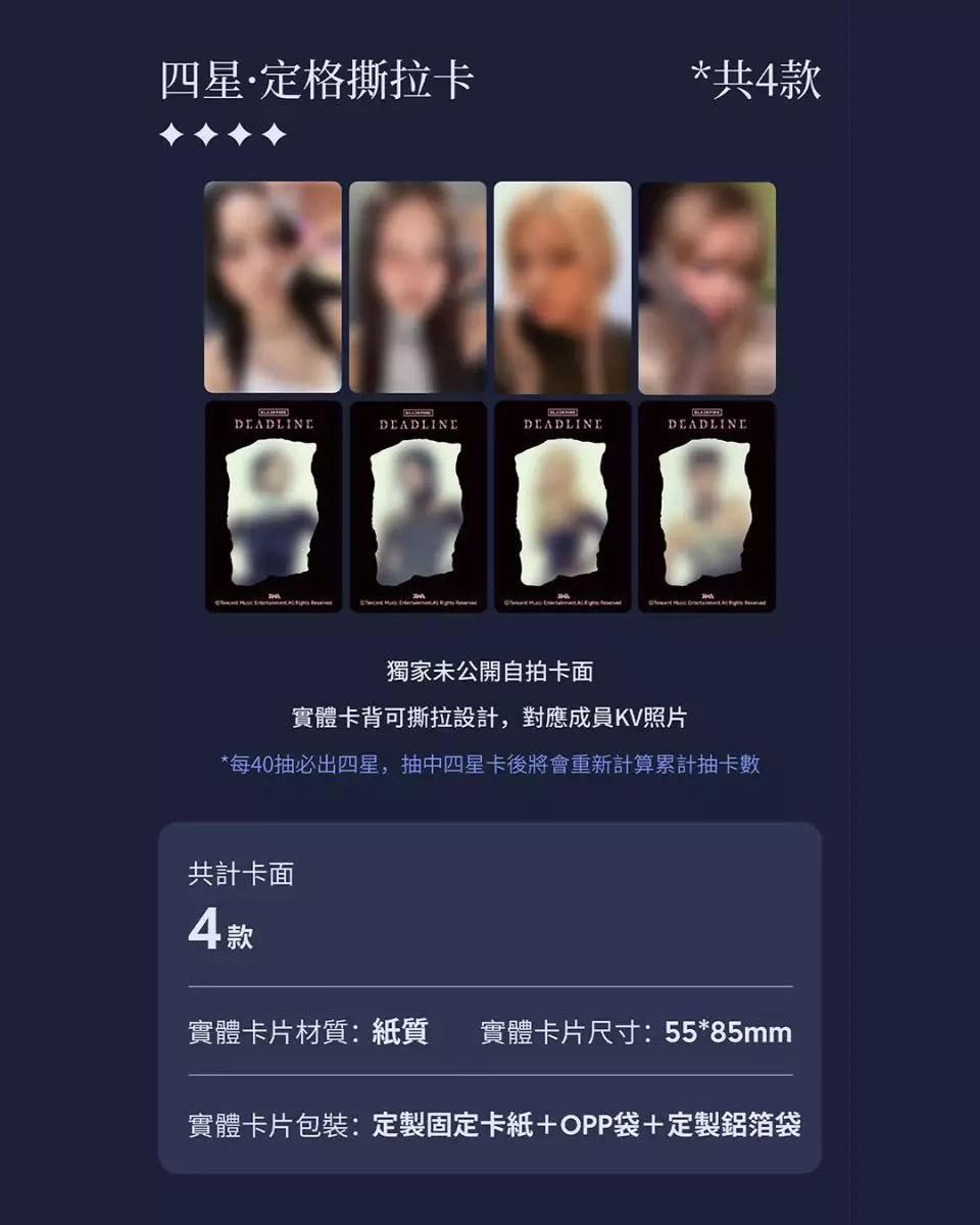 「BLACKPINK·DEADLINE·典藏星光卡」分為四個等級