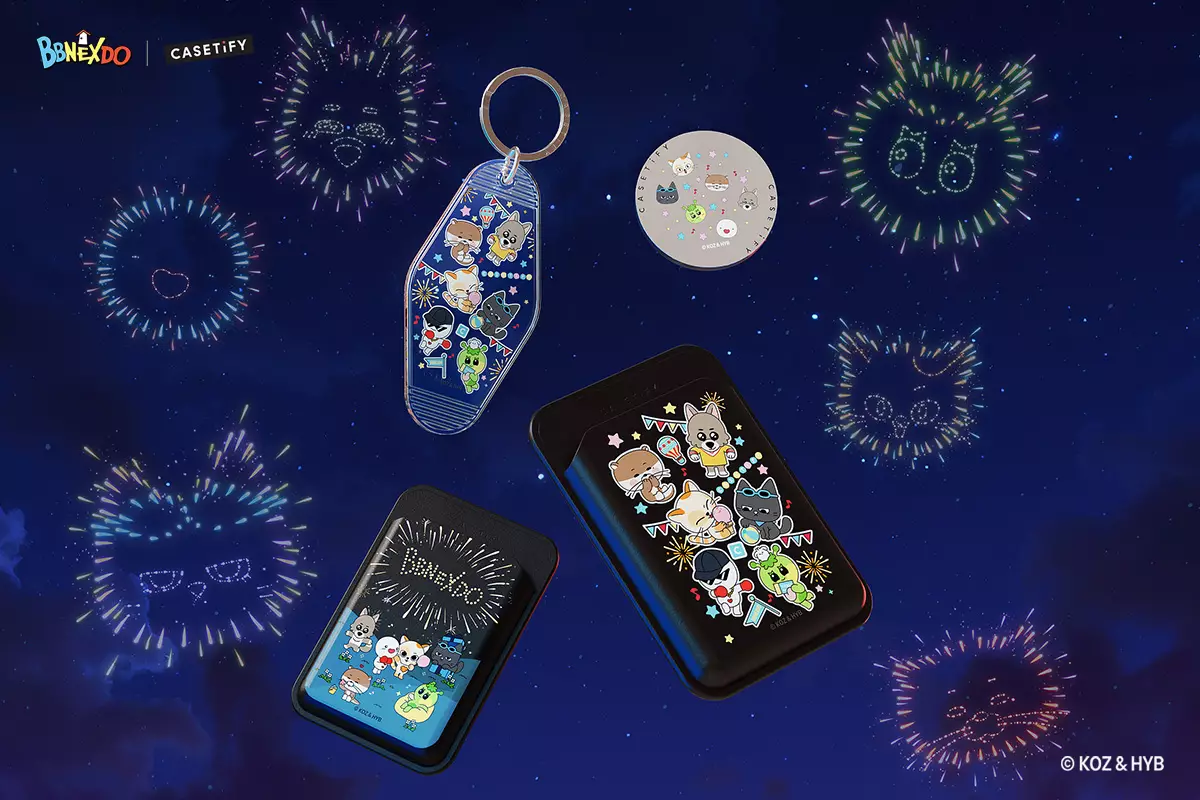 為紀念是次首度與 BBNEXDO 聯乘,CASETiFY 亦特別推出 3 款限量版配件組合,並附設獨家優惠:BBNEXDO | CASETiFY 貼紙手機殼套裝及角色鑰匙扣吊牌組合;BBNEXDO | CASETiFY 煙火手機殼及卡套支架組合;BBNEXDO | CASETiFY 全系列六款角色鑰匙扣吊牌組合。