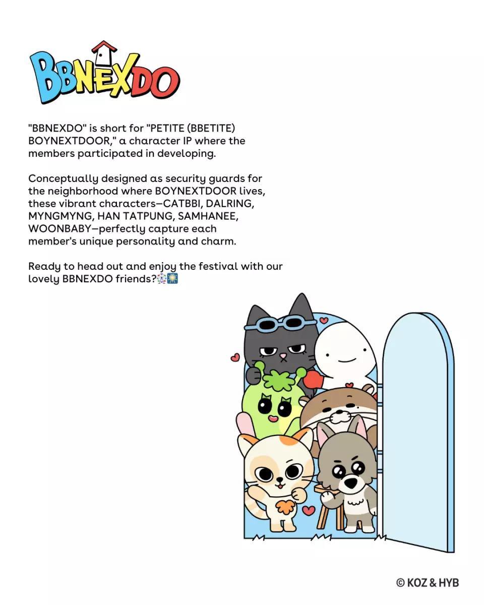 BBNEXDO由6位分別代表每位BOYNEXTDOOR成員獨特個性的角色組成