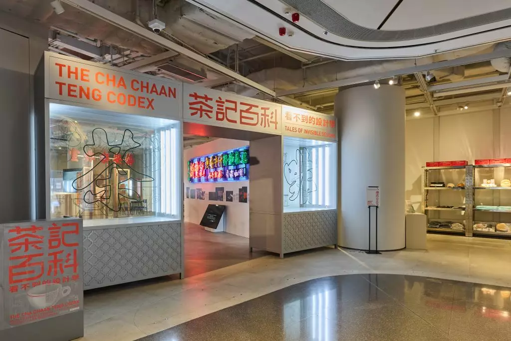 經過昔日上環「海安㗎啡室」的招牌以及大門,展區以精煉的店內舊物,重現經典的茶餐廳空間,從中了解其獨特視覺、空間、家具設計,還有茶餐廳與社區的緊密關係。舊日餐廳的桌椅展現本地小型家具製作如何因地制宜,將北歐經典桌椅設計比例調整縮小,同時運用地區材料,體現港人的靈活創作力。以咖啡渣以及茶葉渣作為材料製作而成的新桌椅,則將同地點的昔日海安與現今現址的咖啡店隔空連結,見證時代變遷。海安㗎啡室的紀錄片將會循環播放,探索由茶餐廳建構而成的空間與人與社區之間的微妙連結。蒐集自不同舊式茶餐廳的菜單、外賣食物袋、蛋撻包裝盒上的中英並列文字與圖畫,展現數碼時代以前,人手逐筆設計而成的美術工藝,以及於舊式逐層疊印方法的技術限制下工匠們迸發的創意。