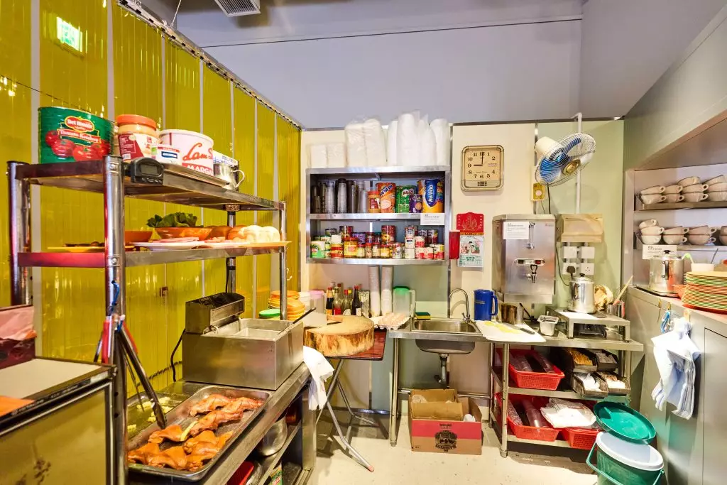 茶餐廳的靈魂水吧,將會以一比一真實比例重現,歡迎你親身進入水吧體驗製作一個常餐的過程;同一時間,現場播放著水吧師傅工作日常,鏡頭以師傅的動態畫出其繁忙時間的工作動線,見證如何以最高效的流水線產出快又準的「光速餐」,同時展示水吧「麻雀雖小、五臟俱全」的佈局哲學。現場還展示了因應沖茶手法與實際需要而演化的水壺、經歷時代演進的奶茶杯、五顏六色的經典Melamine碗碟、五十年不變的麥芽花與橙色和黃色花紋圖案外賣紙杯,共同描繪出茶餐廳與香港工業的關係與發展。