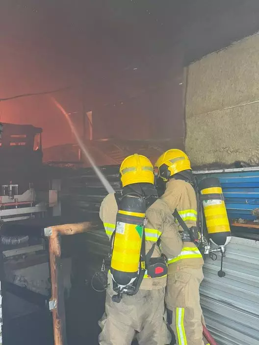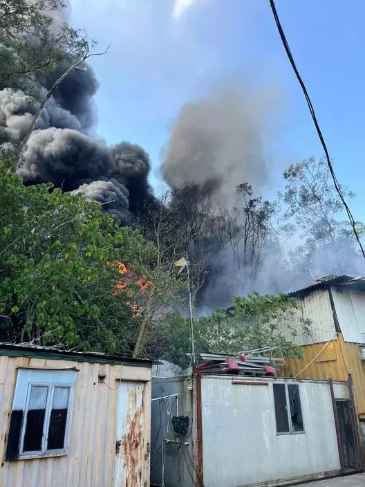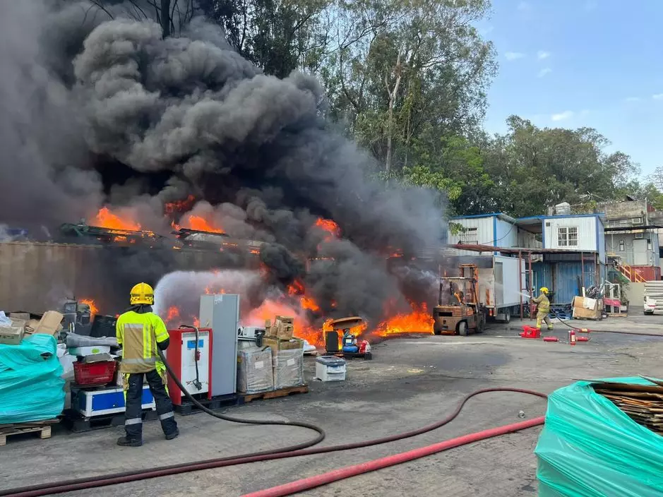 米埔小磡村一個回收場發生火警,消防撲救中。消防處FB圖片