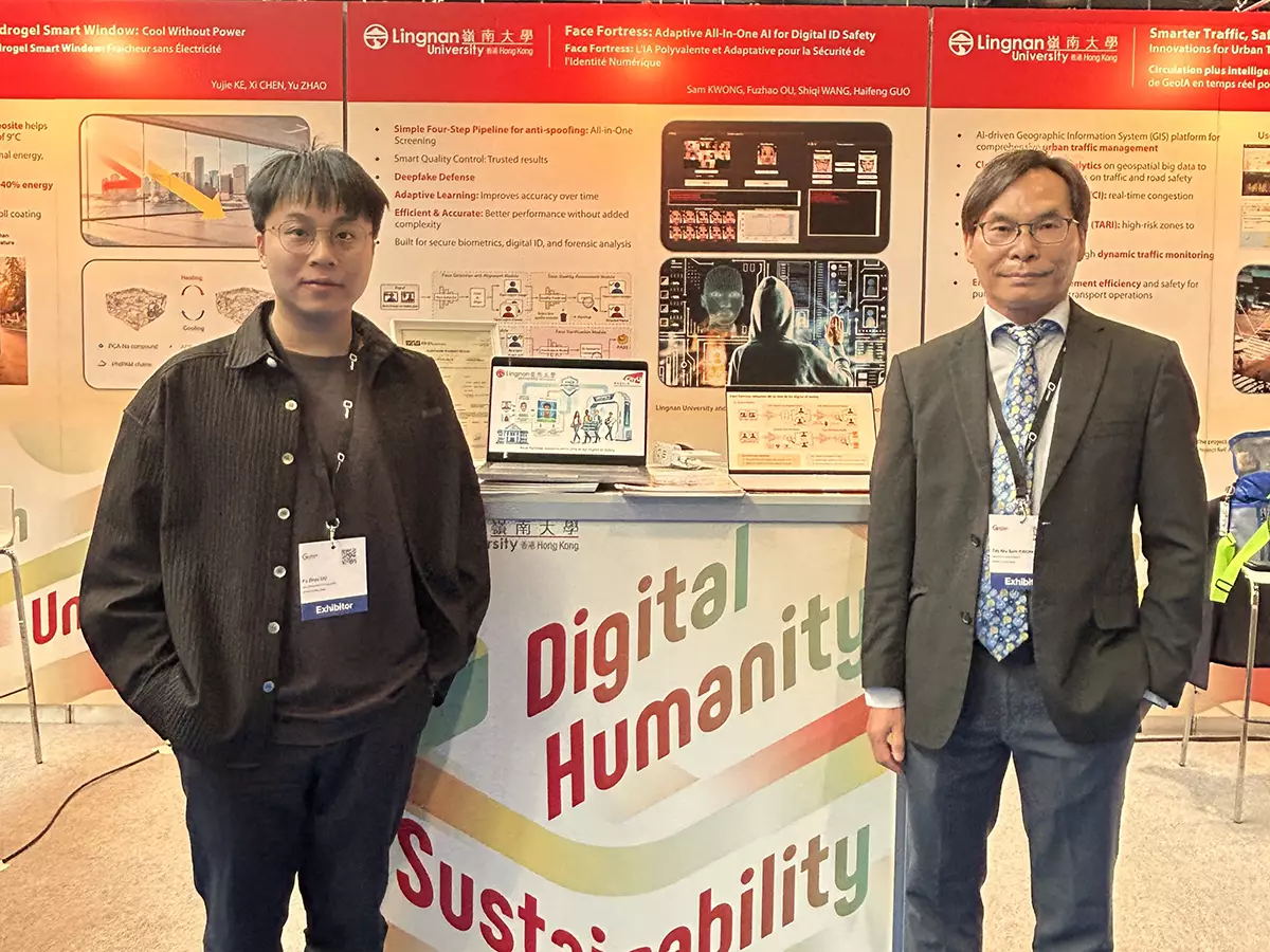 三個榮獲銀獎的研究項目,包括由嶺大協理副校長(策略型研究)鄺得互教授率領團隊研發的「AI 人臉驗證雙重把關系統」、由嶺大伍絜宜跨學科學院院長陳曦教授率領團隊研發的「無需供電、自主降溫的水凝膠智能節能玻璃窗」,以及由嶺大科學教研部主任及副教授(校長卓越青年學者)王沛欣教授研發的「智能交通新方案:人工智能物聯網(AIoT)結合實時地理(GeoAI)分析技術」。