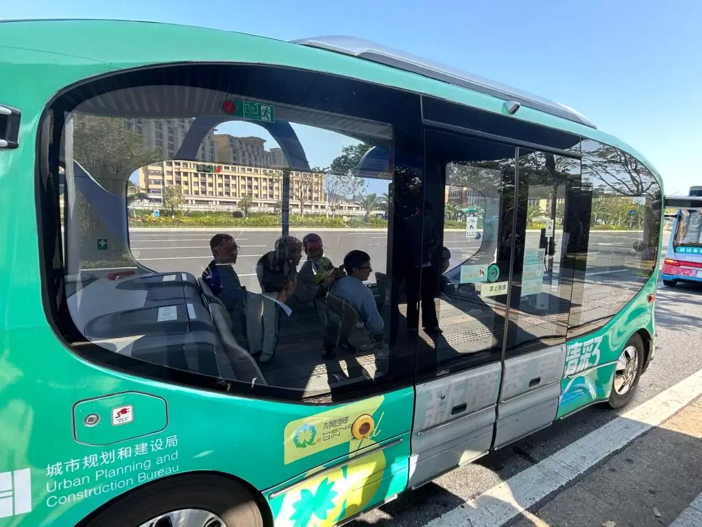 隨後,團員們體驗了路線由橫琴口岸始發的無人駕駛小巴。該項目是橫琴智慧交通建設的組成部分,橫琴粵澳深度合作區近年來積極推進智能網聯汽車道路測試與示範應用。