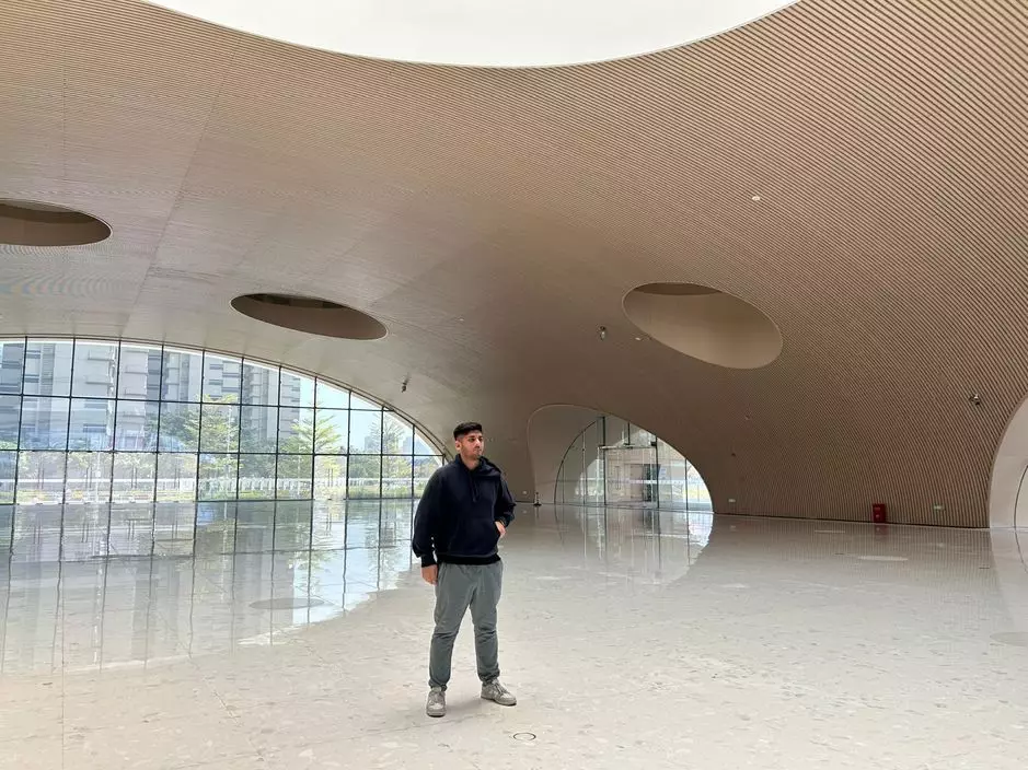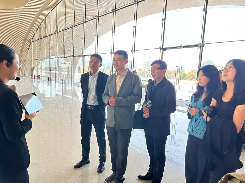 最後一站,團員們走進造型獨特的橫琴文化藝術中心。在演藝中心的全貌圖前,大家一覽無遺地欣賞這座文化地標的建築設計,了解其如何將現代風格與文化藝術功能融為一體。隨後大家步入多功能展覽中心,寬敞明亮的大廳與精心設計的裝飾細節令人眼前一亮,體現藝術與文化的交融。行程最後,團員們登上空中花園平台,眺望橫琴周邊風景。