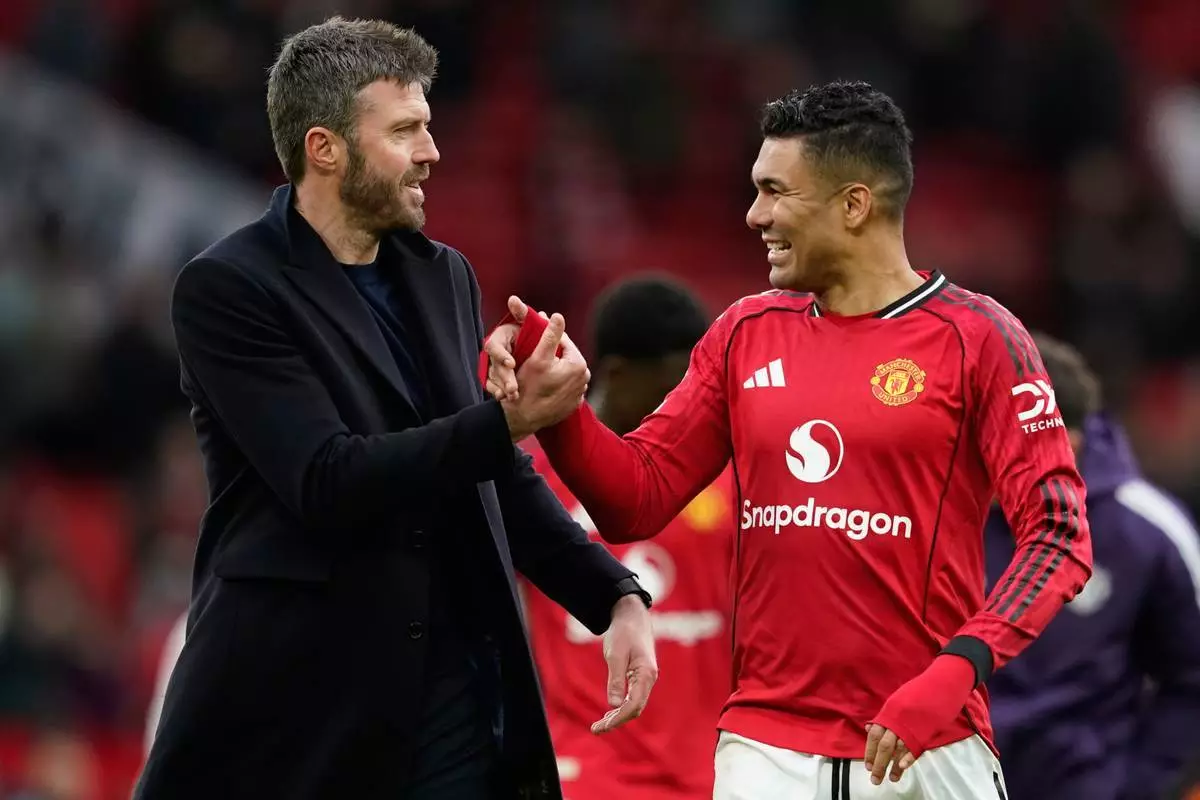 曼聯主教練卡域克(Michael Carrick)與卡斯米路(Casemiro)步離球場。