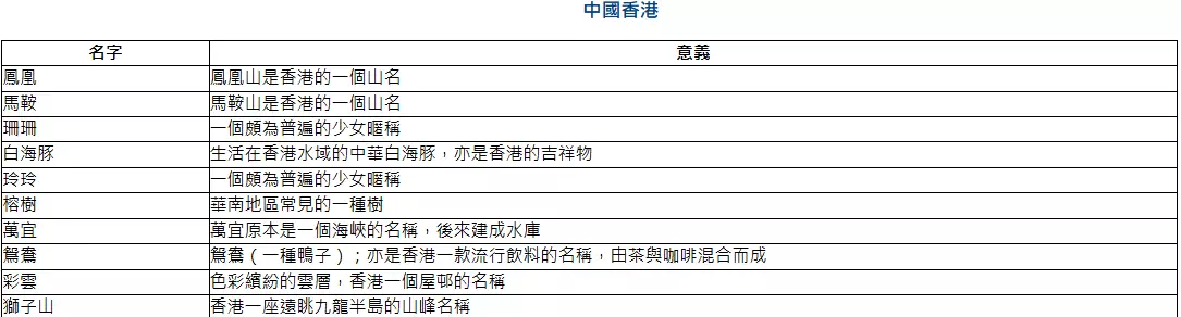 自2000年起,颱風委員會採用一套由區內14個成員提供的預備名單,為西北太平洋及南海的熱帶氣旋命名。其中,中國香港貢獻了10個具地方特色的颱風名稱。而總名單共有140個,分為5組,每組28個。這些名稱原文涵蓋動物、植物、星象、人名及神話人物等多樣元素。