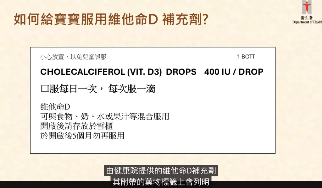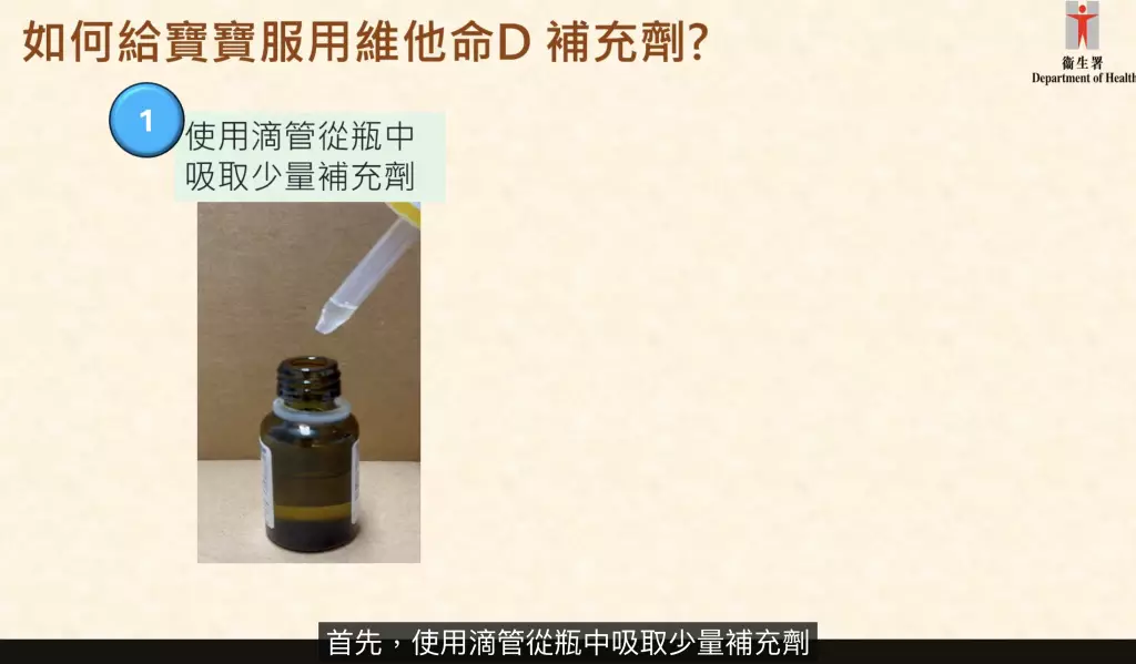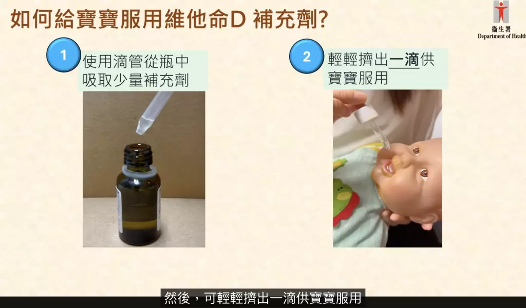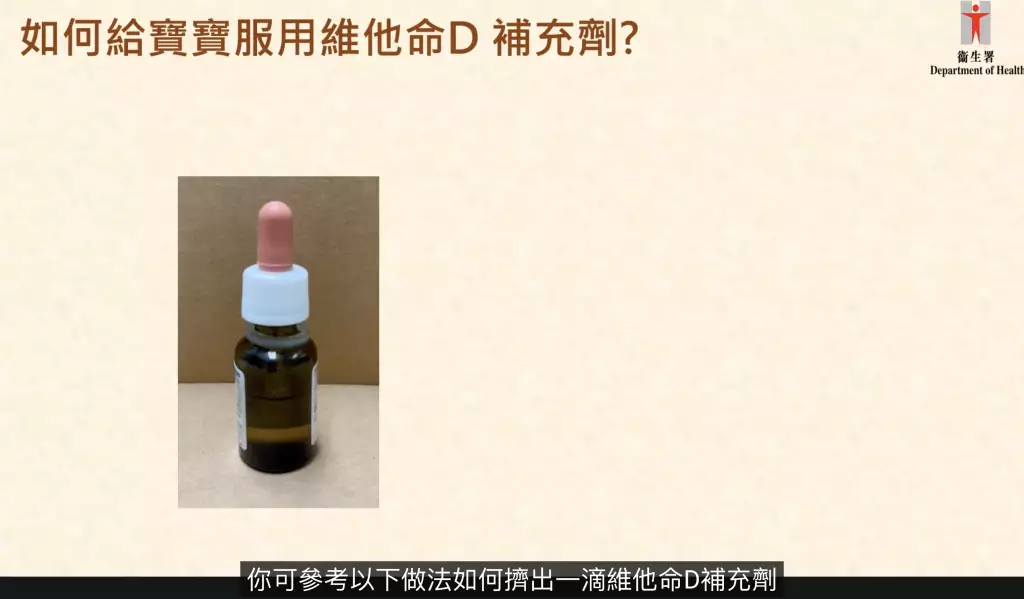 維他命D是促進骨骼健康不可缺少的營養素。家長和照顧者應嚴格遵照建議劑量讓嬰兒服用維他命D補充劑,不應過量或擅自調節服用劑量。影片截圖