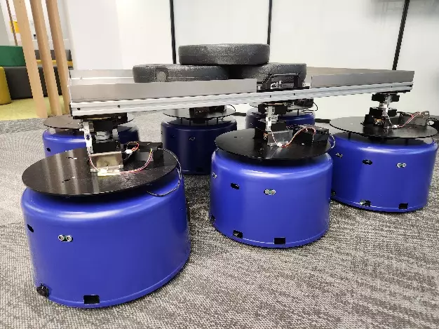 多個機械人協作搬運系統允許多個小型機械人協同合作,將物件從任何起點運送到不同的指定位置。機械人的數量可根據所運送物件的重量而變更,而這些機械人能夠獨立自主地運作,無需中央控制器。系統配備了傳感器,使機械人能感知彼此之間的內部運作力,以避免產生互相衝突的行動。
