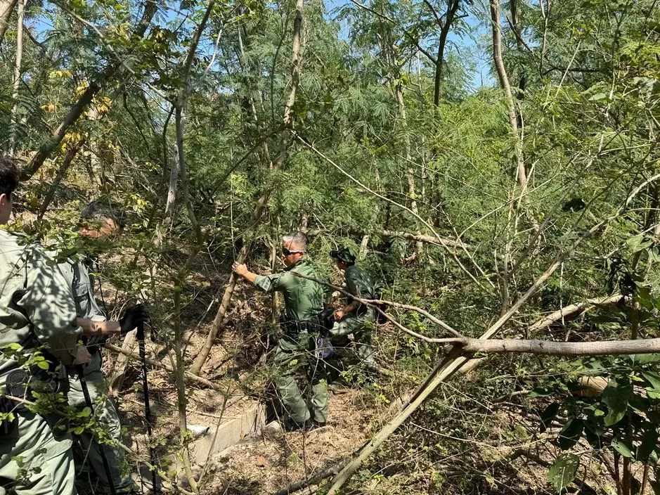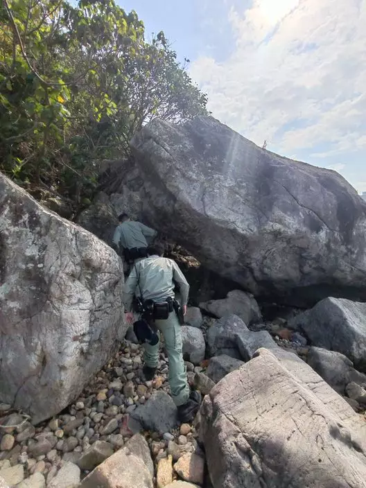 警方搜查山上隱蔽位置及竊匪可能匿藏的地方。警方圖片