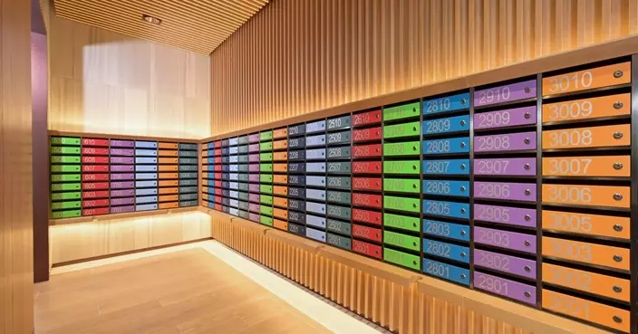 「樂嶺都匯」內的「盛頤居」是房協第4個「長者安居樂」住屋計劃項目,大廈信箱色彩對比鮮明,號碼清晰,方便長者辨認。政府新聞網資料圖片