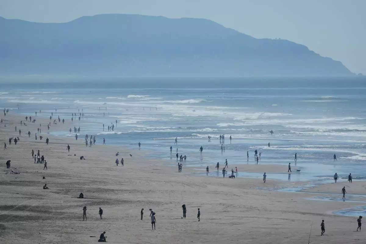 2026年3月17日周二,人們到訪三藩市海洋灘。(美聯社圖片/Jeff Chiu) AP圖片