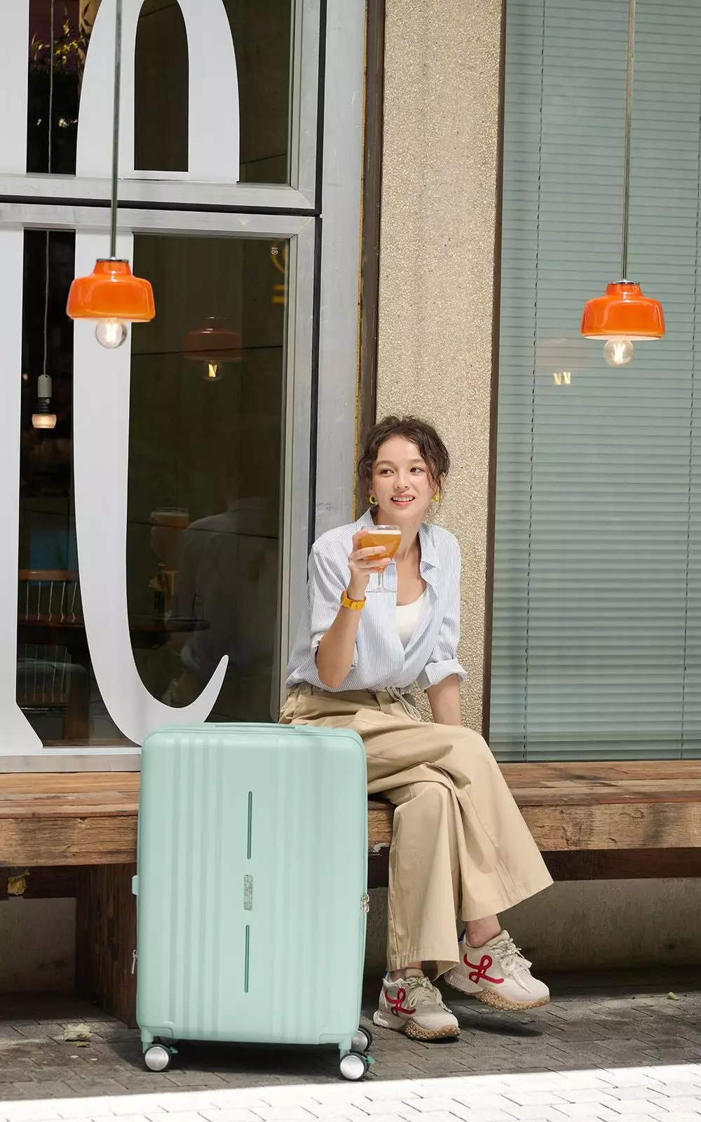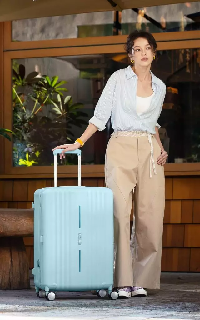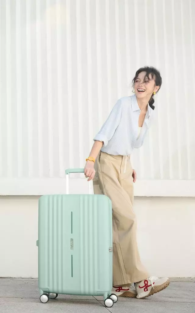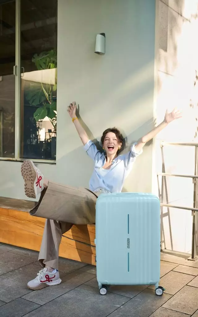 American Tourister 行李箱粉藍色展示