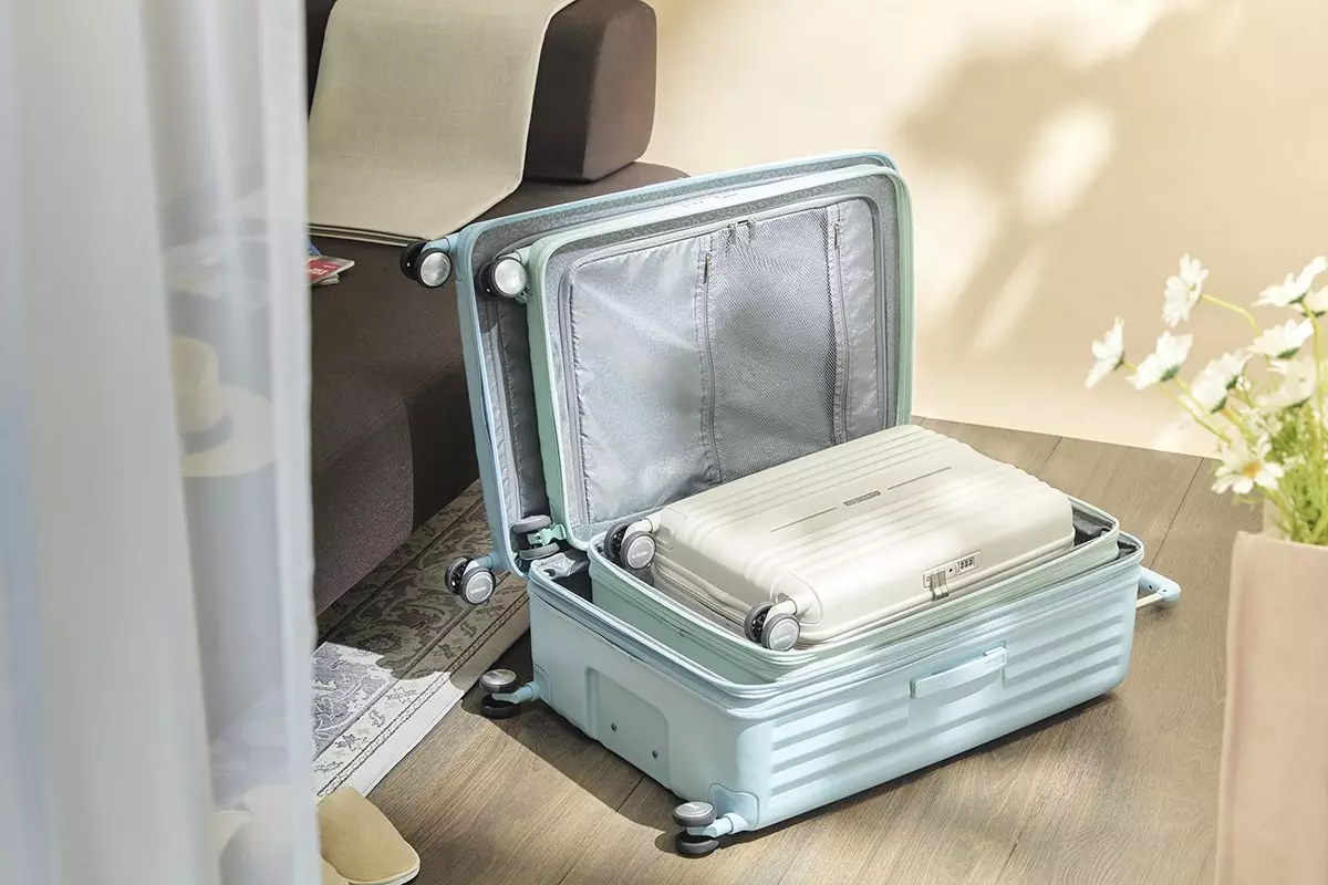 三種尺寸的行李箱設計可相互完美嵌套收納,小箱能完整放入中箱,中箱再套進大箱,疊放後只佔用最大箱的體積,非常適合香港小型居住空間,方便收藏於床底或角落。