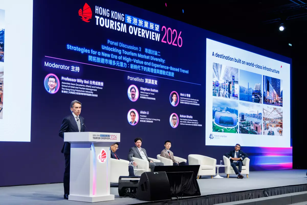 「香港旅業展望2026」邀得文化體育及旅遊局局長羅淑佩出席活動。旅發局主席林建岳表示:「今年活動參與人數創歷屆新高,我衷心感謝業界、合作夥伴、學界對香港旅遊業與旅發局的鼎力支持。我亦很高興率先向大家預告,旅發局即將推出全新主題宣傳活動,向全球展現香港多元化、充滿活力及獨一無二的旅遊體驗,並期望今年繼續與旅遊業界及各界夥伴緊密合作,攜手創造商機,突顯香港優勢,爭取更多高增值過夜旅客訪港,令旅遊業發揮最大經濟效益,一起迎接充滿機遇的未來。」