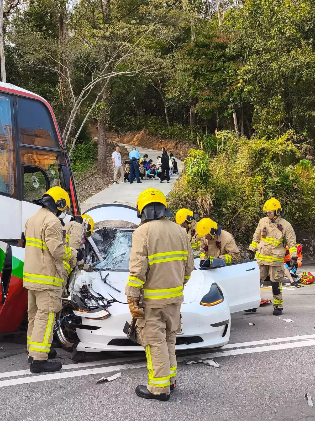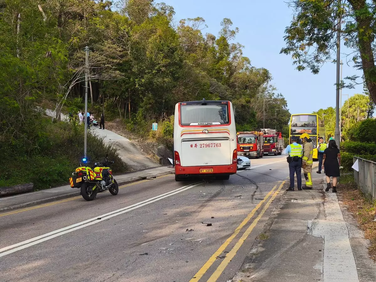 西貢公路近康健路發生交通意外,涉及一輛載有學生的旅遊巴和兩輛私家車,一名私家車司機輕傷送院,事發路段實施單線雙程行車。