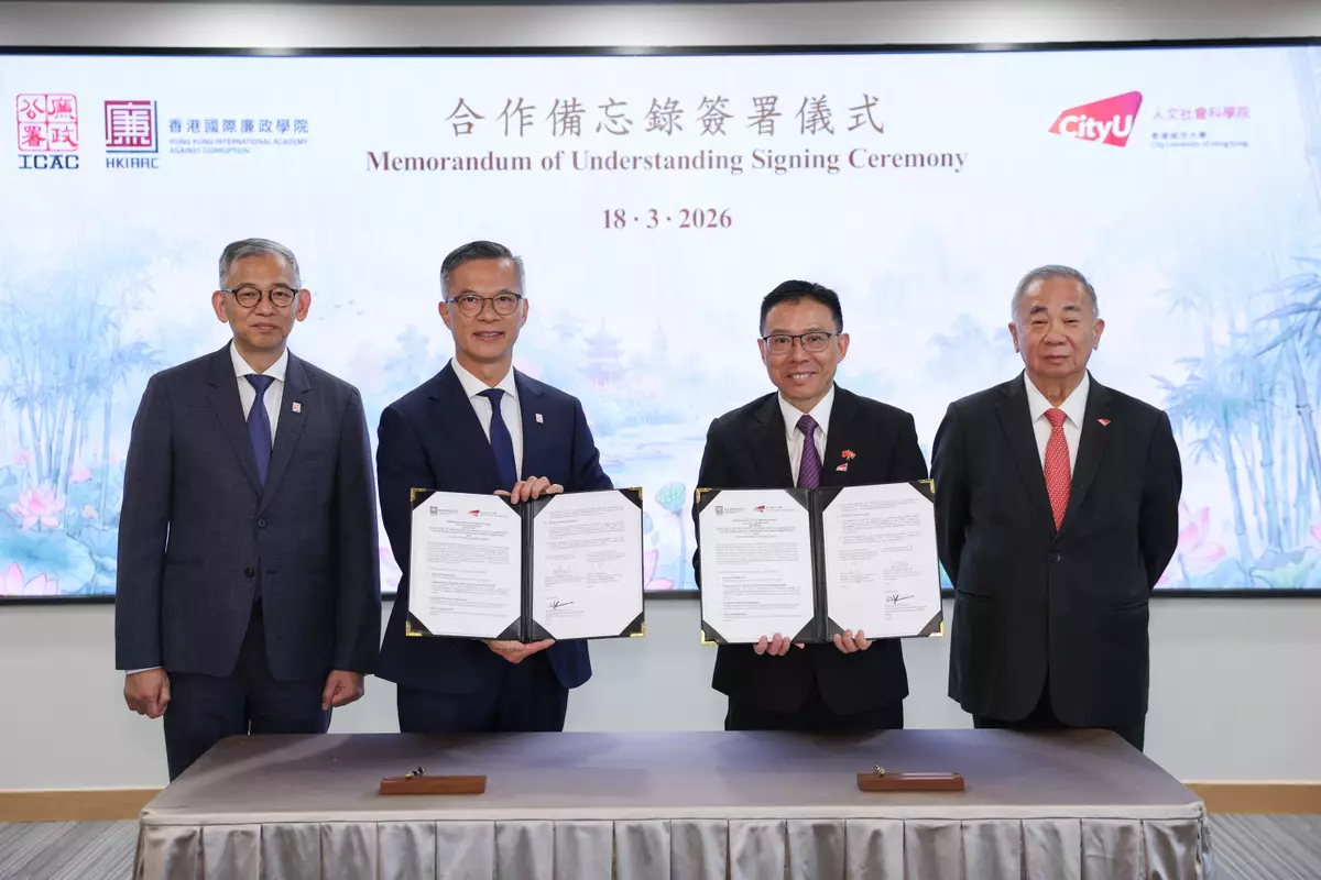 廉政公署與香港城市大學簽署合作備忘錄,由廉署香港國際廉政學院與城大人文社會科學院共同合作,推動反貪研究、培育廉潔人才。