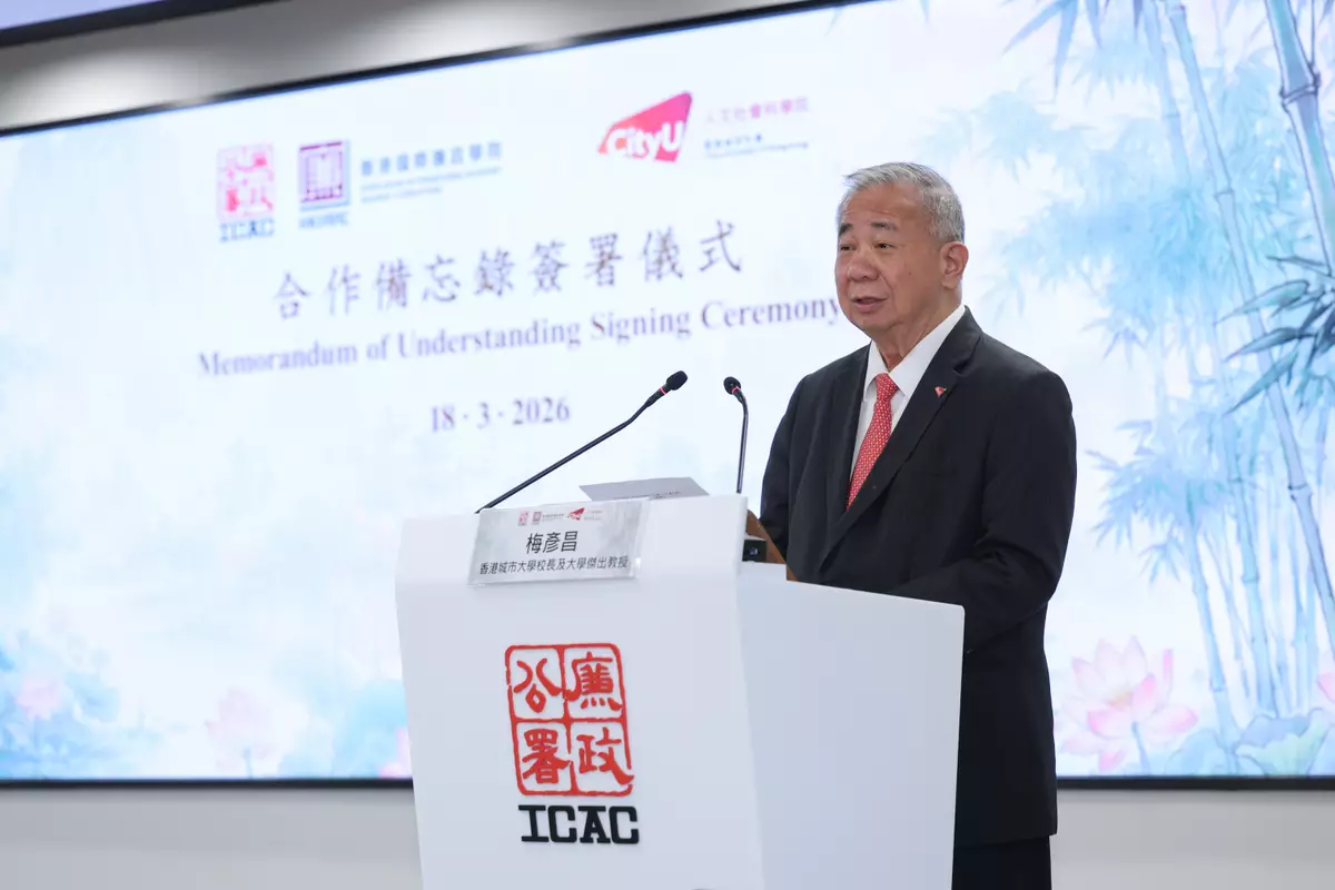出席簽署儀式的城大校長及大學傑出教授梅彥昌教授表示:「是次合作備忘錄標誌着城大與廉政公署將在廉潔、反貪與公共政策等領域展開更緊密的研究與教育合作。我們期望透過學術研究、培訓交流、研究實習及各類交流項目與活動,讓學生親身體驗倫理原則與法治精神的實踐,並培育一批德才兼備的專業人才。衷心感謝廉政公署對城大的信任與支持,讓我們能攜手以教育、創新與夥伴關係,共同鞏固廉潔社會的根基。」
