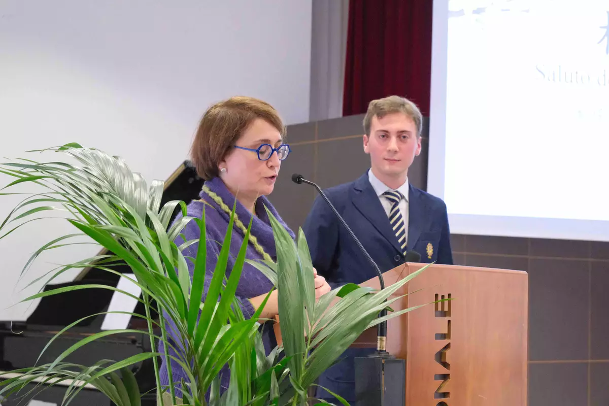 羅馬國立住讀學校校長維古娜(Prof.ssa Manuela Vicuna)致辭。羅馬大學孔子學院圖片