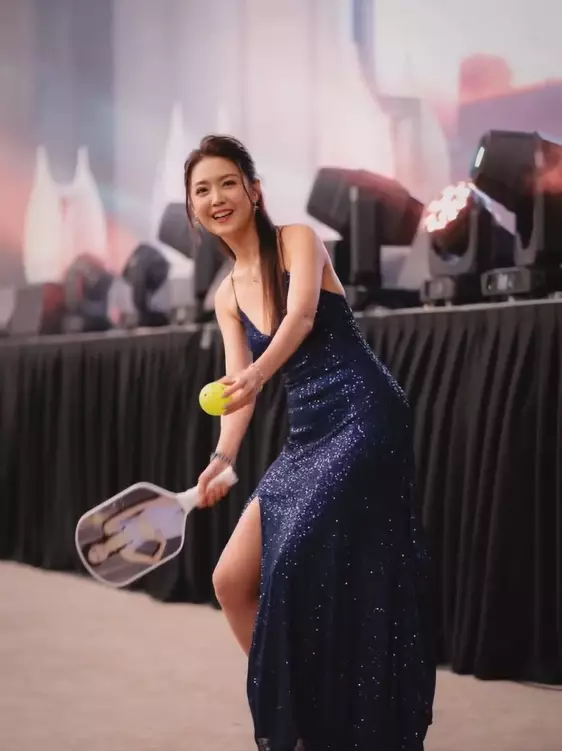 回復單身的陳庭欣(Toby)工作接不停,日前現身聯歡晚宴擔任司儀,穿上Bling Bling藍色高衩晚裝,大騷白滑長腿,性感吸睛。向來熱愛匹克球的她,更帶備私家球拍到場,即席與嘉賓切磋球技,誠意十足。
