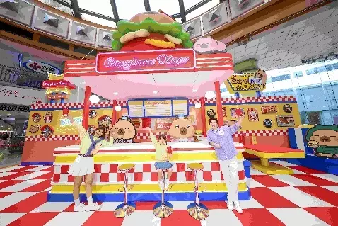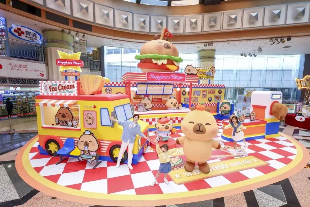 主角卡皮巴拉小黃豚,身形圓潤,以一線眼睛無表情發放鬆弛感,今次化身領導級「豚」長,進駐兩個商場,示範何謂「帶薪發呆」的最高境界。