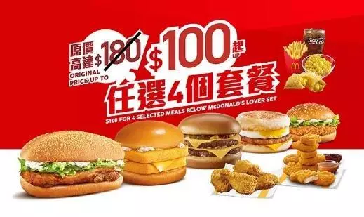 早上 11 時後,則提供兩款人氣套票,包括「麥麥抵食套餐」優惠,同樣以$100 起即可隨心選購四個套餐例如板燒雞腿飽、脆辣雞腿飽或豬柳蛋漢堡套餐,或可加$6 升級至雙層魚柳飽或雙層芝士孖堡套餐,享受雙重滋味;亦可加$7 升級至脆香雞翼(4 件)或麥樂雞 (9 件) 套餐。